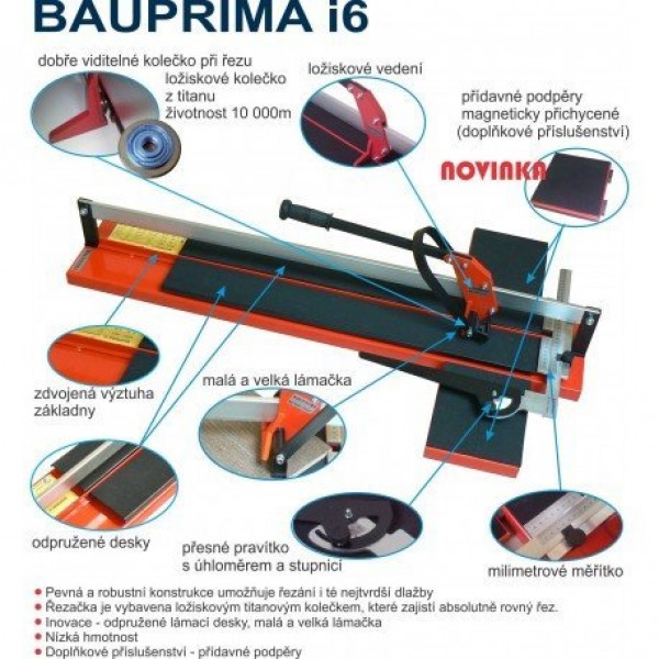 Délka řezu 1200 mm. Řezačka na keramické obklady, dlažby, skla, mramor. K řezačce titanové ložiskové kolečko s životností 10 000 metrů.