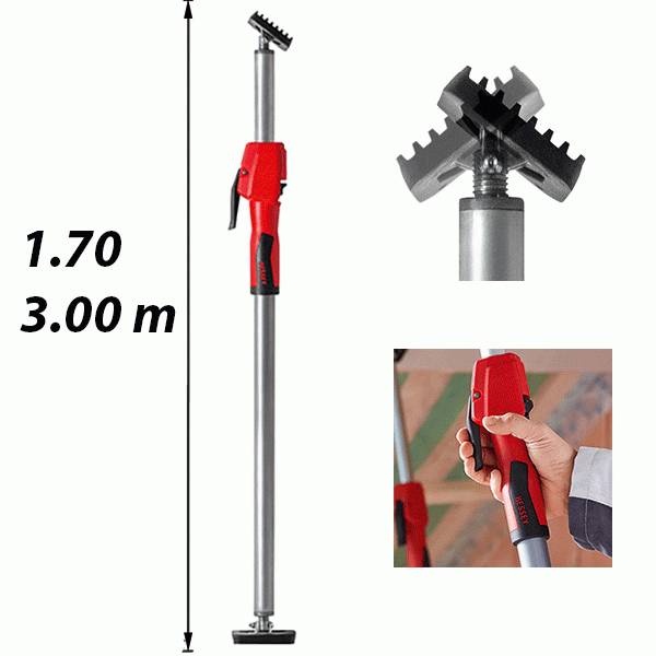 Stropní a montážní podpěra STE s pumpovací rukojetí zaručující spolehlivé a bezpečné upevnění.