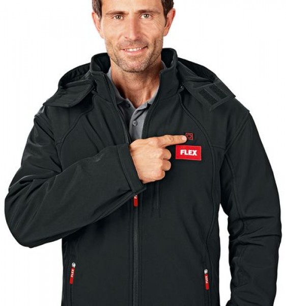 Kvalitní softshelová vhřívaná bunda s pohodlnou fliesovou podšívkou, kapsami a odnímatelnou kapucou.