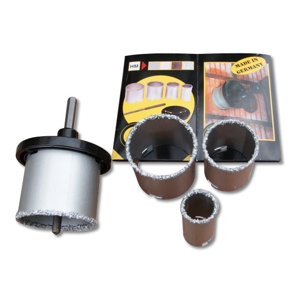 Souprava vrtacích korunek z tvrdokovu průměry 33, 53, 67, 73 mm.