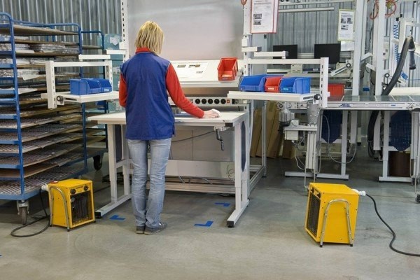 Elektrické topidlo se středním výkonem a nízkou hlučností, pro středně velké uzavřené prostory, vhodné pro řemeslníky.