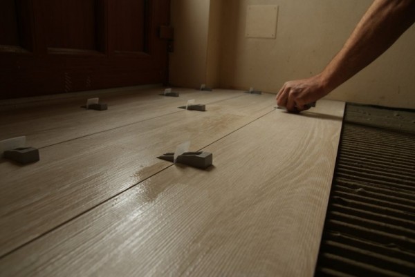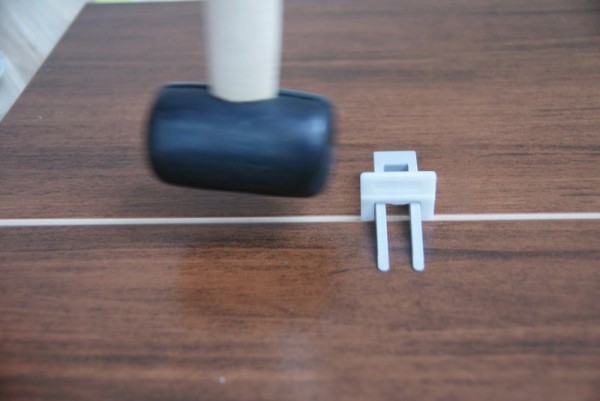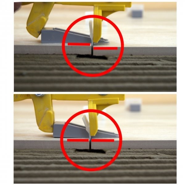 Sponu jednoduše vložíte pod dlaždici, pomoci kleští či rukou zasunete klín, tím dojde k vyrovnání povrchu sousedních dlaždic. Po vytvrdnutí lepidla spony ukopnete.