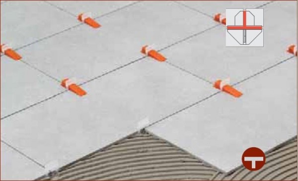 Sponu jednoduše vložíte pod dlaždici, pomoci kleští zasunete klín, tím dojde k vyrovnání povrchu sousedních dlaždic. Po vytvrdnutí lepidla spony ukopnete. Klíny jsou použitelné opakovaně.
