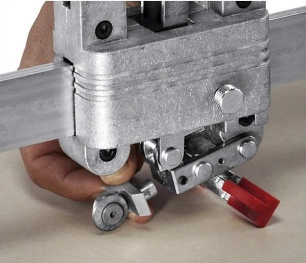 Model pro leváky, pravítko na levé straně, kolečko uchyceno z levé strany pro přímou viditelnost řezu.